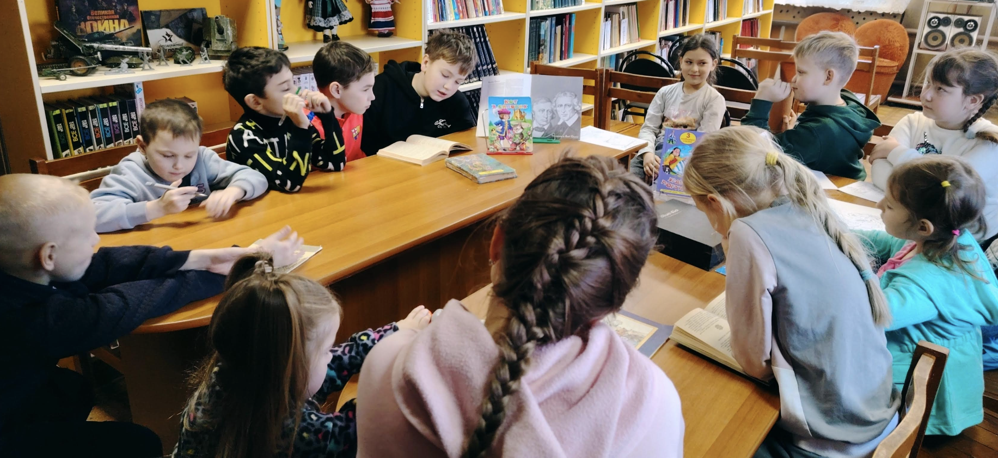 Перелистав интересные страницы из биографии писателей, ребята вместе прочли вслух и обсудили сказку «Бременские уличные музыканты», а затем с удовольствием посмотрели советскую экранизацию «По следам бременских музыкантов». Как признались сами участники: чтение вслух не только помогает лучше запоминать истории, но и пробуждает безграничное воображение, открывая двери в удивительные миры.