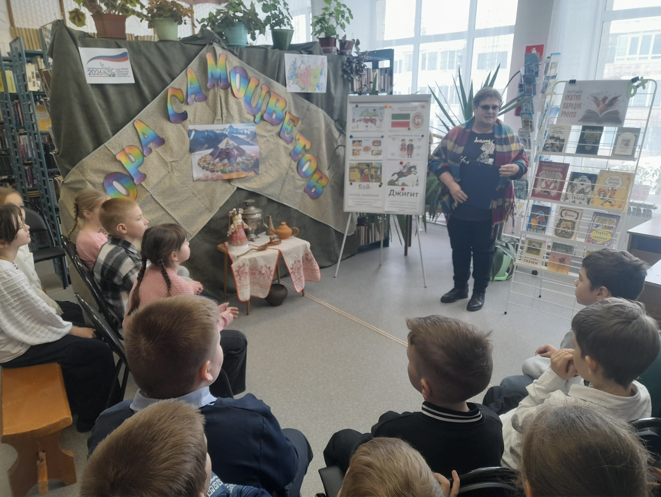 13 февраля 2026 года читатели младшего школьного возраста Кощинской сельской библиотеки отправились в гости в республику Татарстан, чтобы познакомиться с её государственными символами, элементами национального костюма (калфак, тюбетейка) и фольклора татарского народа, традиционными праздниками (Навруз Байрам и Сабантуй-праздник плуга) и блюдами (чак-чак, бишбармак).