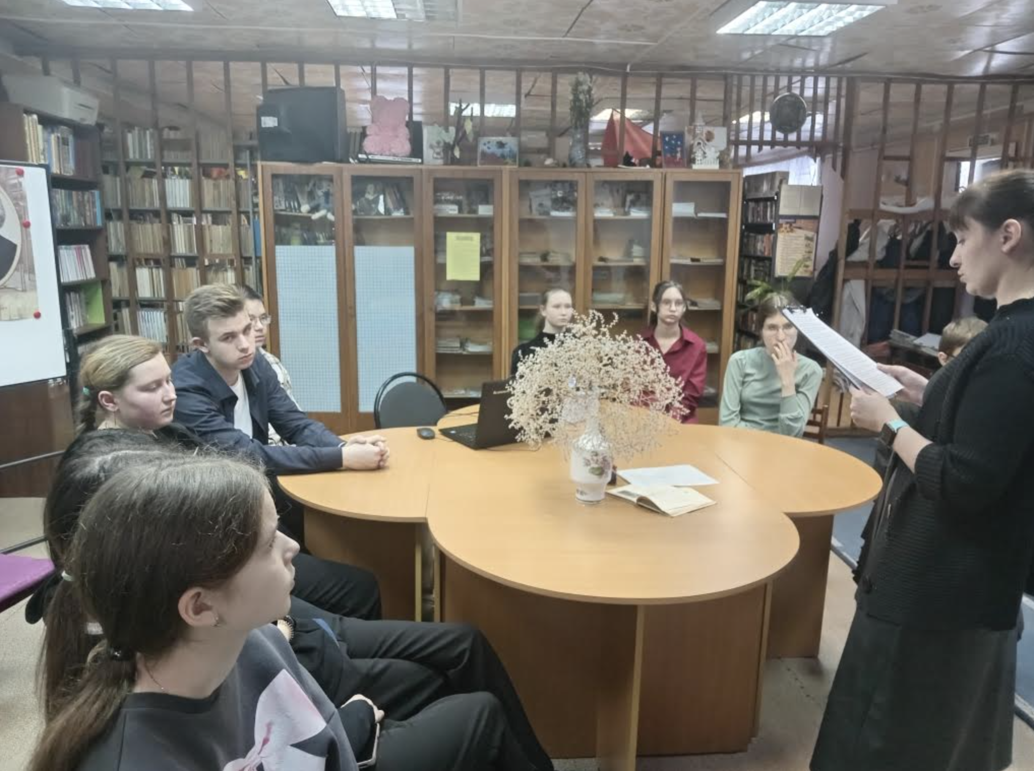 Библиотекарь рассказала о сложном жизненном пути писателя, наполненном личными драмами и возвышенными чувствами. Вместе обсудили самые трогательные истории любви из его книг: от утраченного счастья в "Асе" до страстной и трагичной любви в "Первой любви" и "Вешних водах". Ребята послушали отрывок из "Аси" и стихотворение в прозе "Воробей". Встреча прошла в теплой, уютной и дружеской атмосфере.