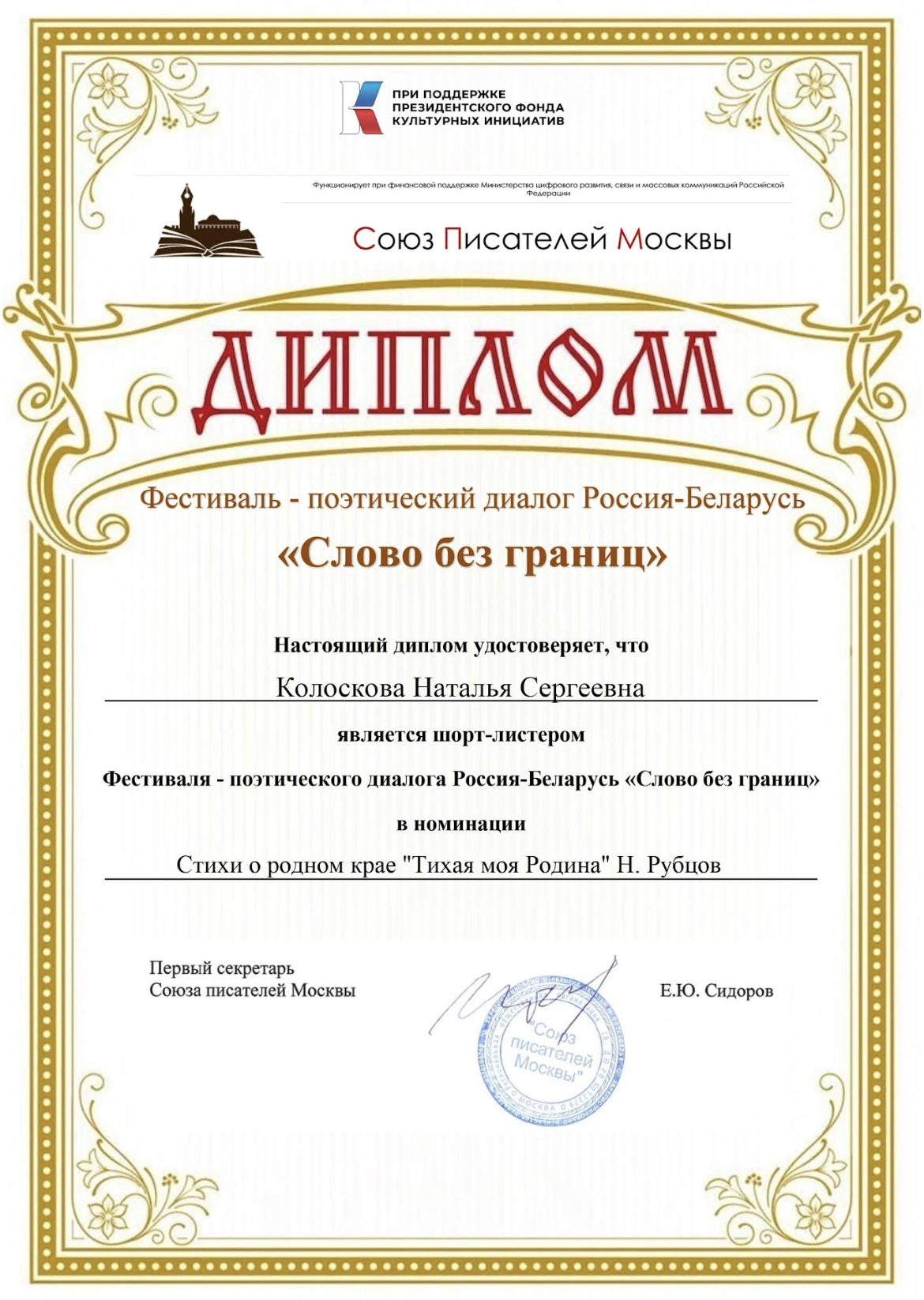 Фестиваль – поэтический диалог Россия-Беларусь «Слово без границ». Подведение итогов (12+)